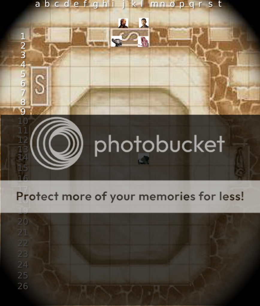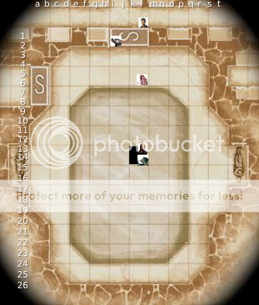 Ukyou feels his blood slow and muscles tighten. The fur on his paws seems to strangely gain weight before he realizes what is happening. With a fierce jerk of his neck, he manages to pull his gaze away from the horror revealed by Tihn's spell, averting his gaze just in time. He then moves forward 20 feet and begins casting another spell. "Want to hide in the pool? Let's make it a really deep one!"