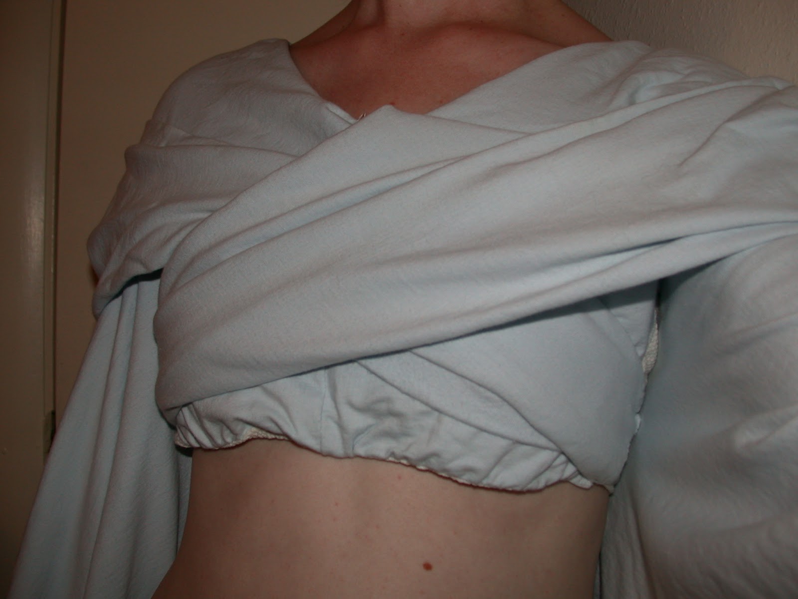 The cloak is wrapped similar to this, except the fabric runs down her body to just below her waist and it has a hood. Underneath that she wears the robes of a Priestess of Ezra.