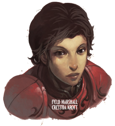 The last exclamation is apparently addressed to a dog-sized pseudodragon that has just made a spectacular entrance through Kroft's open window. Apparently it's not just a pest, though, because Kroft is glaring at the creature expectantly rather than shooing it away. It circles on her desk and chirps at her, then settles on its haunches and cocks its head, looking into her eyes. The Field Marshall sighs. "They say it's that important?" The pseudodragon nods vigorously. "Fine. In fact--you know what, tell them I'm on my way." The pseudodragon gives a happy-sounding chirp and takes off again.