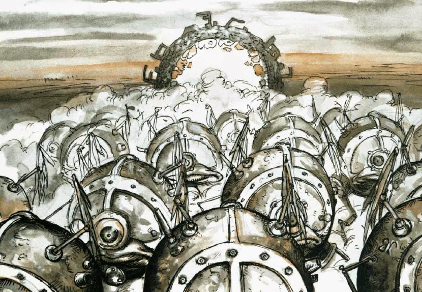 Aerin had been thinking hard, trying to come up with a way to coax the marching horde to alter its course, but to no avail. He helped as be could with the evacuation arrangements, but with great distraction as he continued to ponder how their could divert an inexhaustible stream of unreasonable machinefolk.