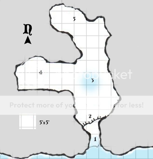 The entrance to the cave is claustrophobically tight. Such a low entrance will provide a measure of protection against attack and a smaller opening for the cold air to come in through. No one has braved the soot-stained entrance yet. If anything resides within you will be at its mercy flat on your stomach squeezing through the tight space.