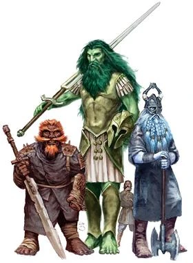 A cloud and stone giant (also a hill giant, I guess), and cloud giant.