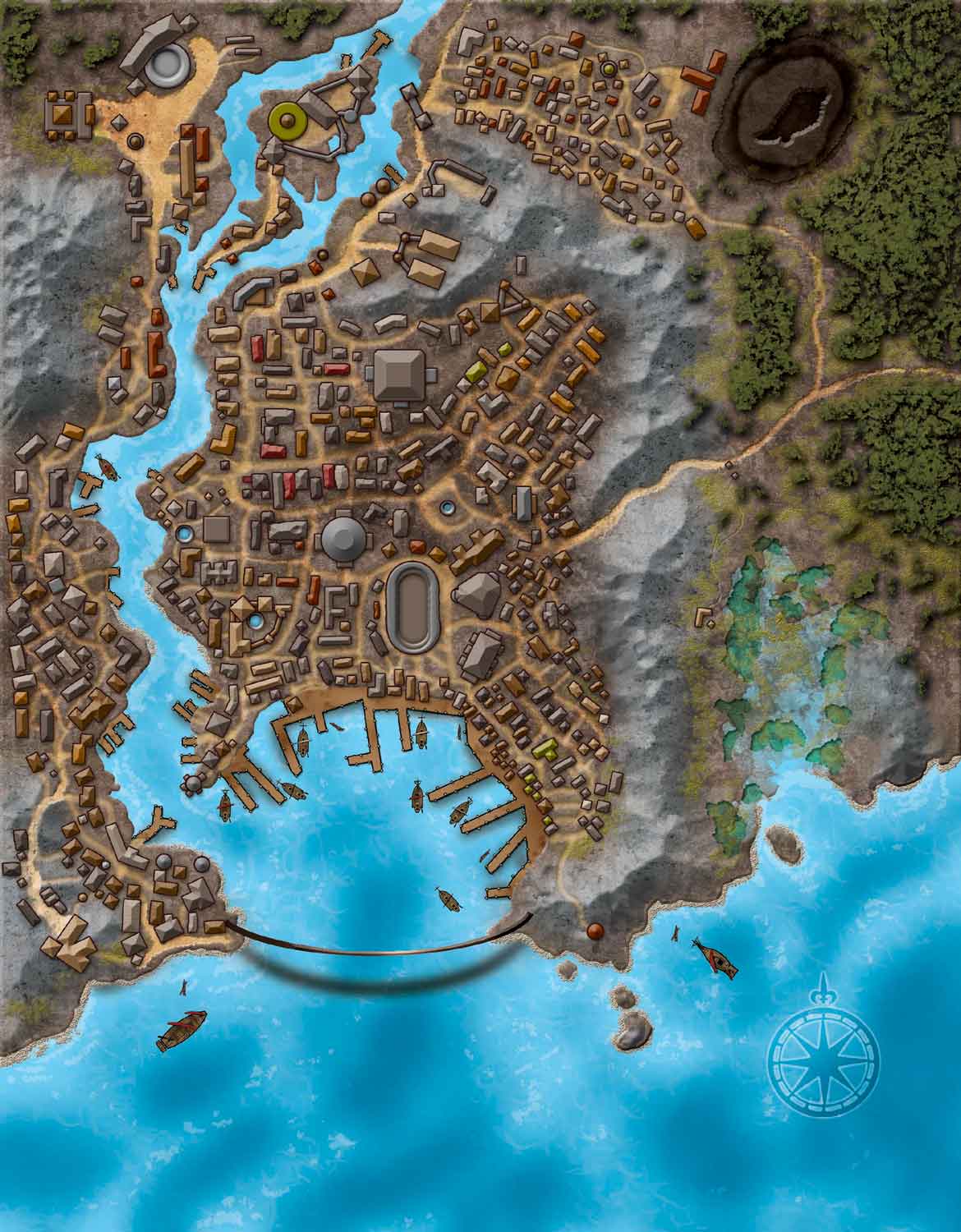 Riddleport sits in a well-sheltered cove on the northern coast of Varisia. You arrive on a chilly, fog-shrouded morning. The famed arch that spans the whole harbor -- the relic of some ancient civilization-- looms through the hazy weather. You are just able to make out the strange symbols that draw scholars and ciphers to this otherwise seedy den of pirates and smugglers.