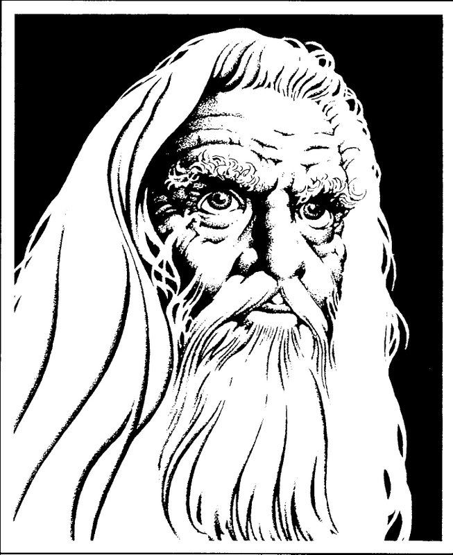 The rest of the escapees arrive, having carefully (very carefully in Conall's case) crested the rise. Healaugh undoes the man's bonds and the old fellow gratefully rubs his wrists. Now he's up you can see that he's very old indeed but still hale at 6 feet tall. His blue eyes have a piercing quality to them.