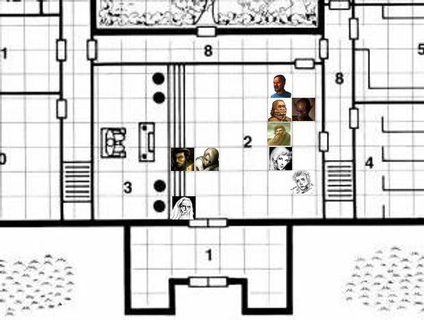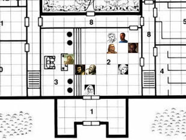 Healaugh awakes and relieves Melisana of duty; the rest of the early morning passes without incident. When everyone awakens they feel refreshed, as if there sleep had not been interrupted at all. The sun rises, peeping through the slats of the shutters at the windows. Hardly any light reaches the hall of the goddess.