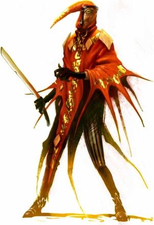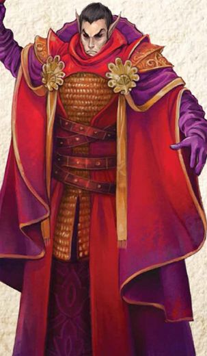 The elf in embellished clothing points at Rhianni. "You...approach!" he commands. Make a Will save
