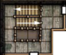 The entirety of this first floor consists of a loading area. An opening in the ceiling into the floor above is filled with a tangle of ropes and slings for lowering lumber. Nearby, a flight of stairs ascends to the next floor. Two sturdy wagons sit to the south, next to a bank of machinery accessed by four low doors; the grinding and creaking of the machinery fills the room.
