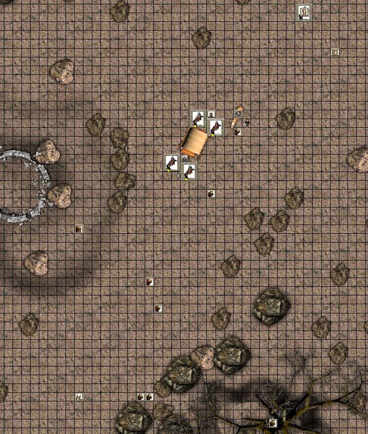 1d20 + 1 ⇒ (14) + 1 = 15 Ride check to control Sadie; this isn't enough to get Moneta thrown, but it's reasonable to have the GM put Sadie and Moneta at his whim (plus, I really can't read the map well enough to be able to try and position on it.)