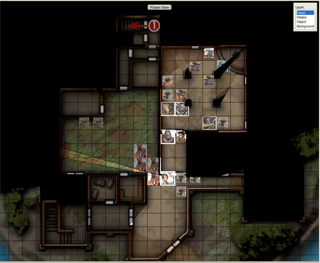 Lleidr pops back inside the hallway, delivering a blow to a goblin rushing up to attack Ned.