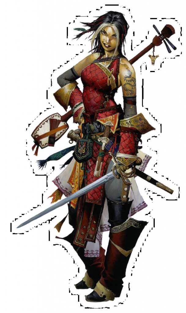Right after you start digging in and Ameiko has returned to the kitchen, the tavern door opens and then slams shut with a bang. A surly visitor bellows out some kind of sharp-tongued command in a strange language. You recognize the fellow in an instant: Ameiko’s father, Lonjiku Kaijitsu, one of the wealthiest men in Sandpoint.