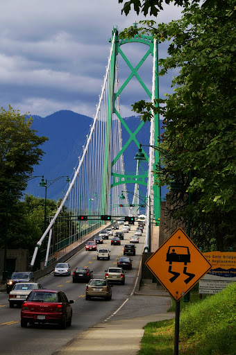 The short way is to take the Lion's Gate Bridge south into Stanley Park and then follow the causeway into downtown Vancouver, and through the core to the hospital. The bridge is impressively high and takes you well into the park before you leave its gates in the park.