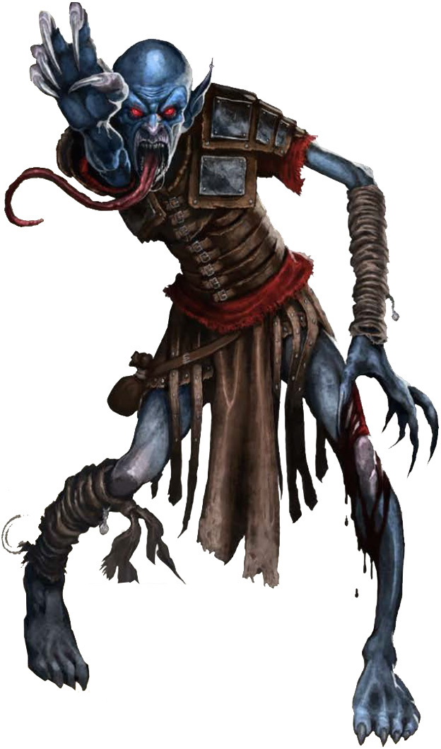 Long claws attached to tight blue skin reaches up onto the bridge as the creature lifts himself out of the water. This humanoid creature has long, sharp teeth, and its pallid blue flesh is stretched tightly over its starved frame.