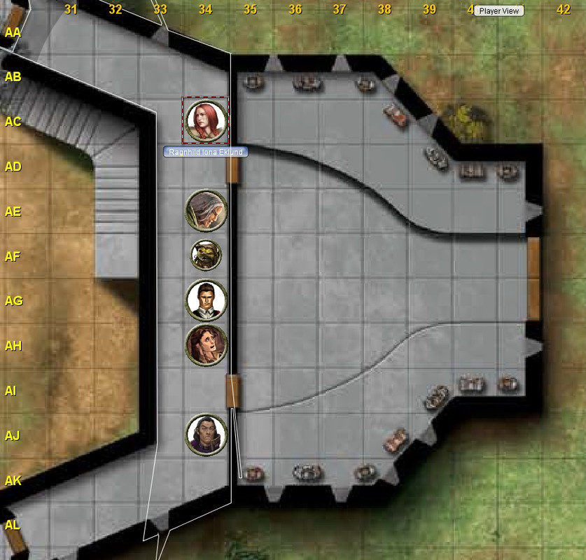Returning the way they came, the party explores in the opposite direction. Passing through the southwest turret, Ragna opens the door onto the corridor running through the rear wall of the citadel. The left-hand wall is pierced with arrow slits which let in narrow shafts of light. Shaserai sees no signs in the thick dust and cobwebs that anyone other than themselves has passed this way any time recently.
