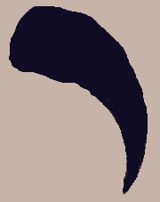 The (hidden) tattoo (and brands) don't seem to ring a bell. It's wider on one end, tapers down, like a hooked claw.