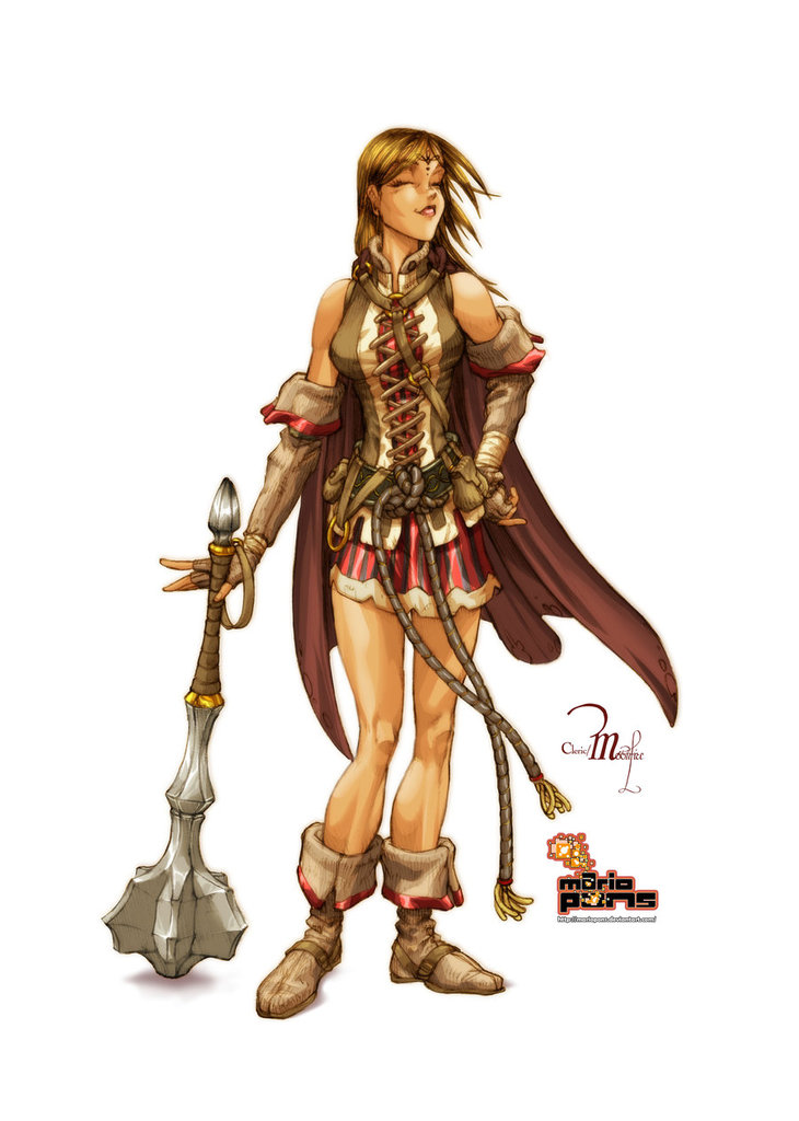 Swaggy's band of backup bards begin belting brilliant burning beats that beautifully bombard bullies. Elfshanks is unaffected; clearly she's tone-deaf. Her allies, likewise, quickly plug their ears and escape with only minor injuries. Unfortunately for them, Batry takes advantage of this distraction and launches a crossbow bolt straight through the fire lady's brain! She's a good healer ... but not good enough to cheat death. Not for a few more levels, anyway. Wait, what does that mean? Whatever. It's not important. Chamba's busy stealing elfshanks' daggers, and that's much more interesting. If you steal something from a thief, can it really be considered theft? After all, stealing involves taking something from its rightful owner without permission, and a thief isn't the rightful owner. This is why everyone hates moral philosophers. And thieves.