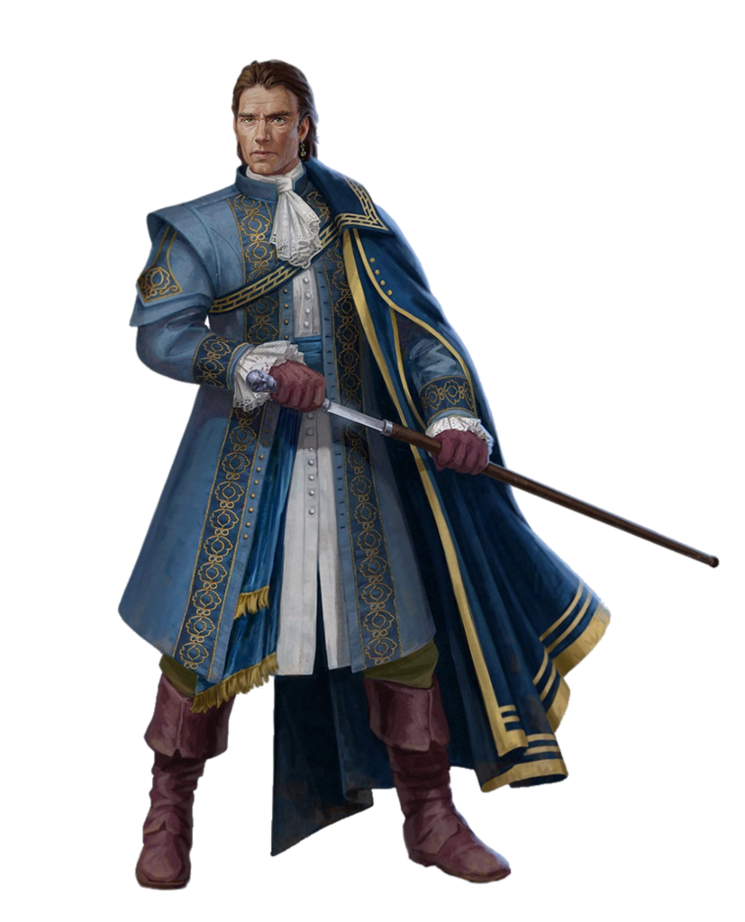 Allow me. @GM: My Disgraced Noble trait lets me add 2 to Bluff checks to conceal identity. I think this applies? I Robert invested in a pompous outfit for the Taniger. Unfortunately this means he probably didn't bring his cool weapon.