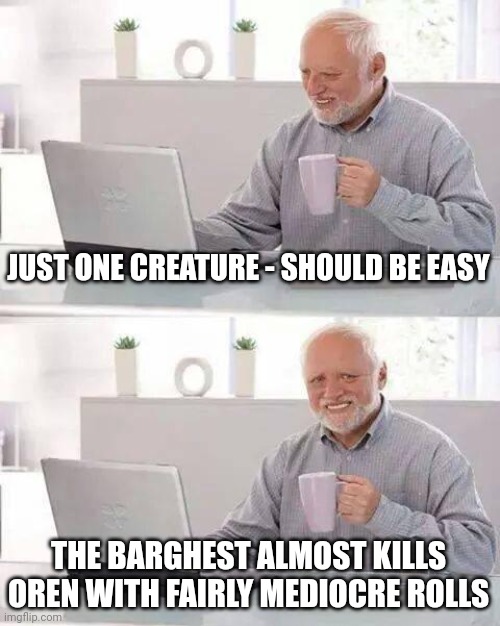 We are actually rather underpowered for our level even if fully rested and prepared. Most of us don't have even the +1 runes on our weapons. We are also unprepared for a difficulty spike level of fight. Considering the numbers for save DC this thing put up, it is looking like it is a few levela higher than we are.