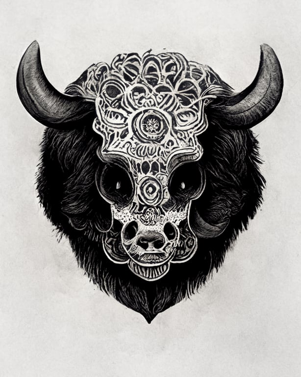 "I open my heart to you and hear your name, Momozhuani." Yoltzin spoke, pressing her forehead to the skeletal bison before her. When she moved back, her head was left marked by the undrying blue paint. "Let us walk the prairie once again."