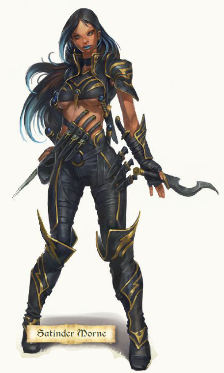 She saunters over to Markus and asks if she may have a seat. If so, she introduces herself, "Satinder Morne, cleric of Calistria and you would be the interested party hoping for a large shipment. Name and affiliations?"
