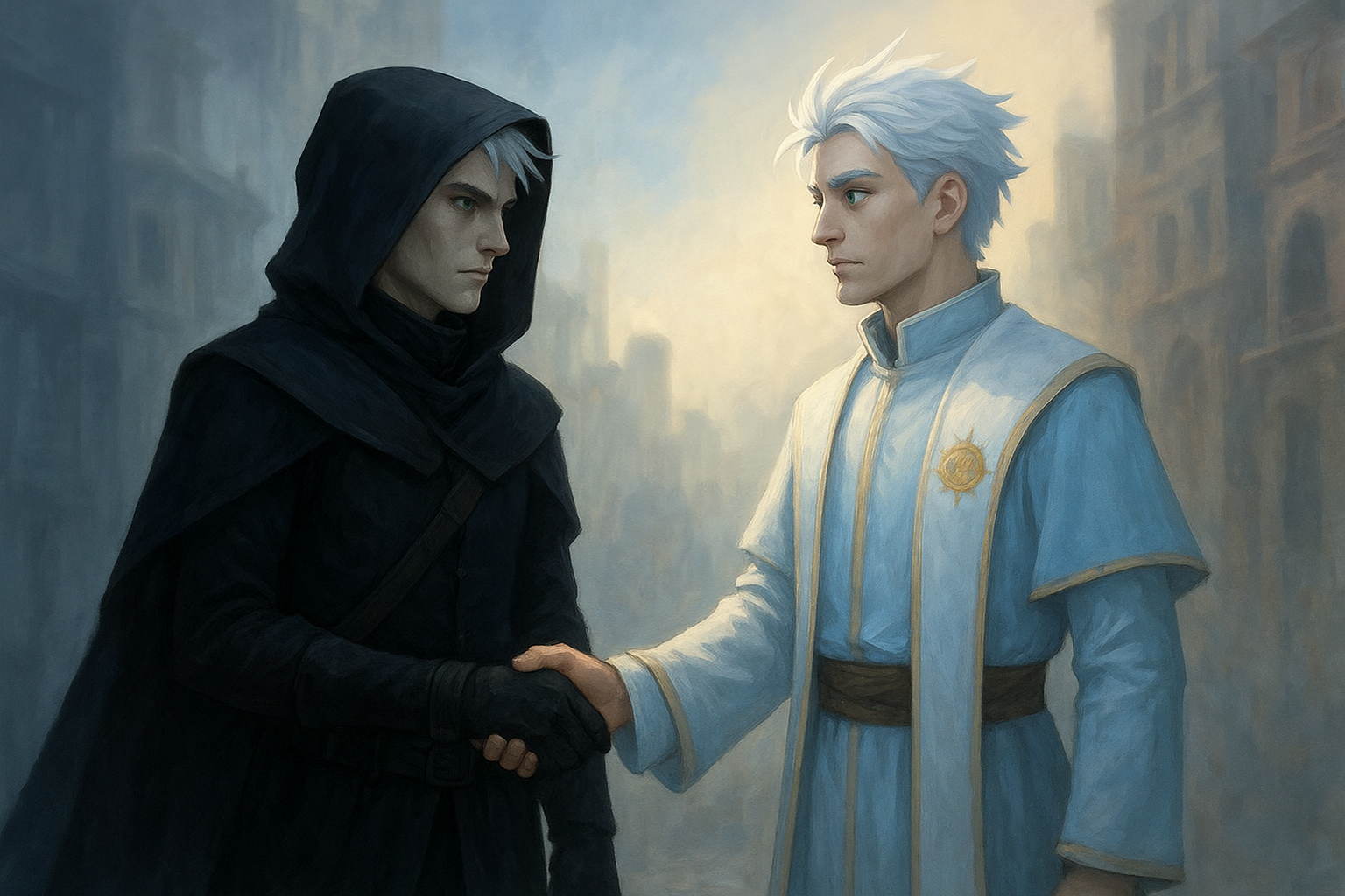 ![]() Immune to a lot, but still vulnerable to curses, divination, insanity (too late :p ), word spells, and worst: compulsions Between the strain of channelling Birdsong, defying ascending pretender to Dream and receiving full backlash of Abnaki's last word, Aisling's personality burst into many. The original, retrieval agent of the church, quiet, but full of faith, action oriented, quiet, withdrawn even turns even more inward. His dark combat clothes suit him perfectly, but he gets the hood now, very similar to how Gabriel appears when he has to be in public eye. Everything but the mission fades into the background. Action comes first, things to do, tasks...not people. This new withdrawn Aisling runs in the weeks hiding in the dream through various personalities, defetist Ashling, cowardly, slinking Aishroud, depressed Aislow as the mocking names of his former self. Aislum (Asylum) it thought of itself at some point with narrowly avoided horror of the Moon, reliving the inquisitors and the death of his group, supressing gasps in the darkness, before it's eyes opened wide, the heart quieted and it knew - it is Aislune, he found the name Luna in the ancient lore referring to the original Moon, not this split remnant. Aislune - the fear drained away, emotions blunted and cold rationality ruled. Aislune retreated from the horror scene, knowing he is already prepared for eventual restoration of his group or at least his love. Grisly, but he took steps to keep their parts separate and preserved. As they drew closer to the living world, the other part of his person, the one he had to assume to appear in front of people started reasserting itself as Aislune dreaded the return to the city, among its throngs. But the one that was inspired by The Dream, the idea of Sky returning, the one that drew the crowds to first dawn after milennia...it grew. And in Dream, it showed as bursts of inspiration, literal light or song that occasionally burst from his hidden companion. And each time it happened, this new one was better defined and longer was Aislune supressed. Not that he didn't know what happened while hiding, just that he hadn't really like the attention the other attracted and kept his mind separate. And once the crowd in dreams grew enough and dream city appeared, it was time to awaken. Two personalities regarded one another in the Dream moments before outing, noting their differences, even hating some of them, but Birdsong, gentle soothing sound between them kept peace. There will be moments where one or the other was needed. They shook hands among the people of this dream place. And Aisbright stepped forward, new Dawncaller of the Sky emerged in a burst of light and birdsong from The Dream and into the reality. ![]()