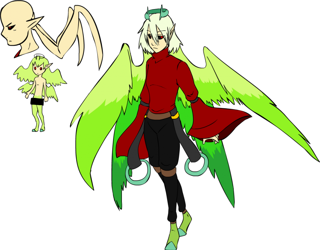 Quick, lousy sketch Tenriel's body is androgynous in all ways, as Ten's race doesn't reproduce using existing members of the species. Ten answers to any gender pronoun, but doesn't identify with either. Without constant magical padding, the weight of his wings is actually too much to fly, or even move well, with. Homeworld and race fluff: