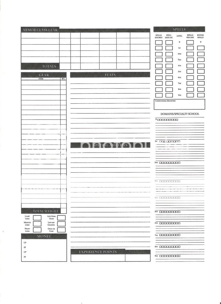 The above links lead to a copy of the character sheet should you need it What about Feats? How many do I get and do I have to pick them from the Pathfinder BETA pdf or can I use the ones from the Complete Adventurer Book and PHB?