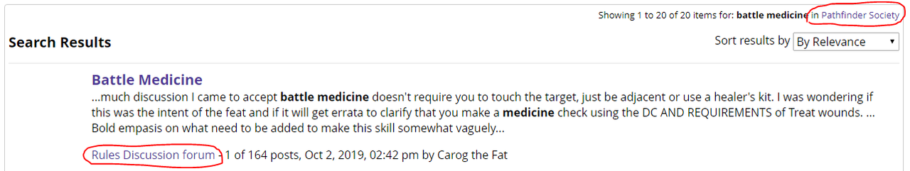This isn't about the results being irrelevant, but rather the range in which Search is expected to search and that it does not live by those confines. https://i.postimg.cc/t4X7N594/image.png It says that it is searching ONLY within the society forums, yet the first result is not in a society board or sub-board, but rather in a completely different place.