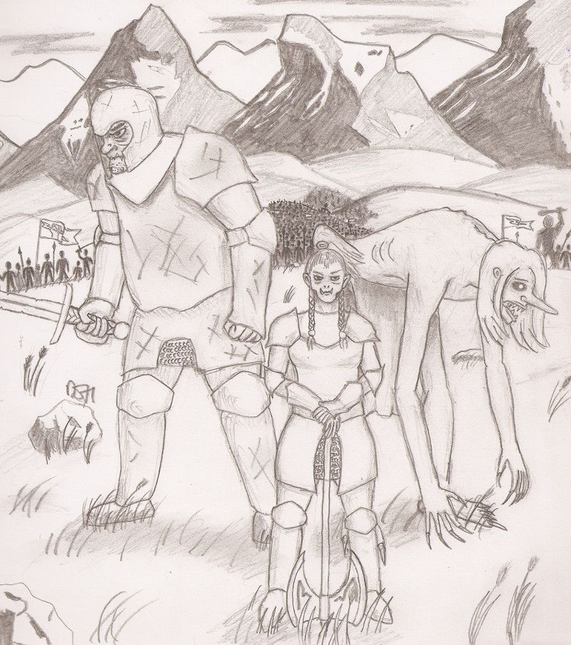 Are any of you interested in coming up with shared backstory for your characters? If so, feel free to discuss such things here. So, I've been working on a map of Zurogh and the surroundings. I'll post it when I'm satisfied with it, probably within the next few days. In the meantime, here's a relevant picture I did, just for fun... Does anyone know how to link a picture so that it shows in the post itself? I don't think that that's possible here (and probably by design), but maybe I've missed something...