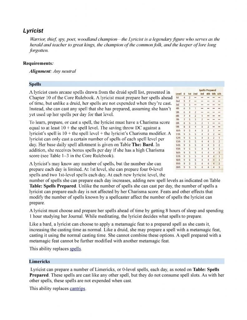 Quote:Warrior, thief, spy, poet, woodland champion—the Lyricist is a legendary figure who serves as the herald and teacher to great kings, the champion of the common folk, and the keeper of lore long forgotten.Requirements: