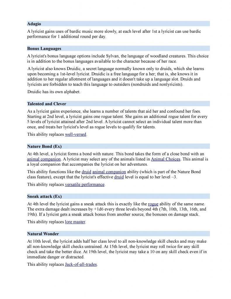This ability functions like the druid animal companion ability (which is part of the Nature Bond class feature), except that the lyricist's effective druid level is equal to her level –3.This ability replaces versatile performance.