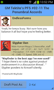 On a side note, I am trying the Wayfinder app which allows and android user better access to pbp games on the paizo boards. I was looking at the screen shots on the Google Play site, and look who I found!