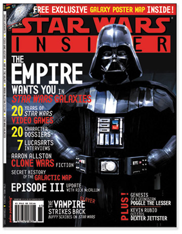 Star Wars Insider Issue #65Paizo Inc.The next issue of the Star Wars Insider continues chronicling the Clone Wars, slays a few vampires, and gets a power-up or two to land the high score. Bestselling author Aaron Allston pens an original short story set during the Clone Wars. Meet Joram Kithe, a Republic accountant who's dodged responsibility his entire life. Now, he's somehow ended up stranded on a battlefield in charge of a clone trooper platoon. Find out what happens in "The Pengalan Tradeoff". This issue also marks the start of the HoloNet News column. Learn the latest developments of the Clone Wars, from both the Republic and Separatist fronts. The pop culture-savvy writers of Buffy the Vampire Slayer expound on their love of the galaxy far, far away, and their knack for sneaking Star Wars references into the popular television series. Celebrate over two decades of electronic gaming with a retrospective article on the computer, console and arcade games inspired by the Star Wars saga. This issue also has an in-depth look at who's who in LucasArts' upcoming Star Wars Galaxies game. Producer Rick McCallum checks in with the latest Episode III developments in his Prequel Update column, Kevin Rubio interviews Dexter Jettster, and all the favorite regular columns and departments round out this issue. Product Availability