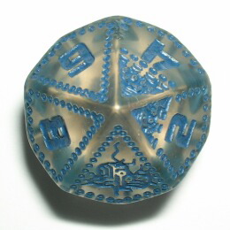 Chip D10—Transparent & BlueQ-Workshop Decorated with engraved markings made to look like a circuit board, this fabulous D10 would be great for use in any futuristic or space campaign. It is numbered 1 to 10 with the numeral 10 replaced with a computer chip design seemingly peeking through from inside the die.