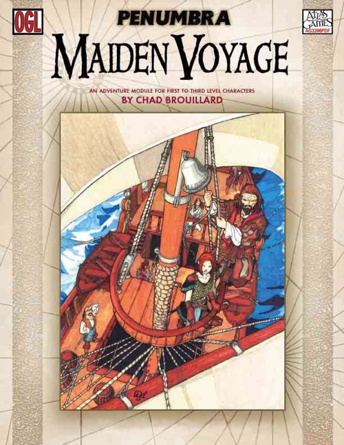 Penumbra: Maiden Voyage (OGL) PDFAtlas GamesAn Adventure for 1st- to 3rd-Level Characters There's a tale you might hear in a tavern by the docks if you catch an old sea dog on a dark night laden with rum. He'll tell you of an all-but-forgotten sea god with a hatred for the living and their ships that so brazenly cross his waters without offering the blood sacrifice he demanded in the days of yore. The god's powers have been waning, as brave sailors of all the races bravely cast off in search of far horizons and treasures to fill their holds, but on the darkest of days his might returns. The grizzled sailor may have known someone who set sail on the Sea Maiden, just before such a day three decades ago, and never returned. Others may tell you that the crew of the Sea Maiden was restless, and mutiny was in the air; the crew no doubt ended up hanged as pirates in a distant port. But your storyteller assures you he knows better: the dark god of the sea had his vengeance—and he will have it again one day soon.