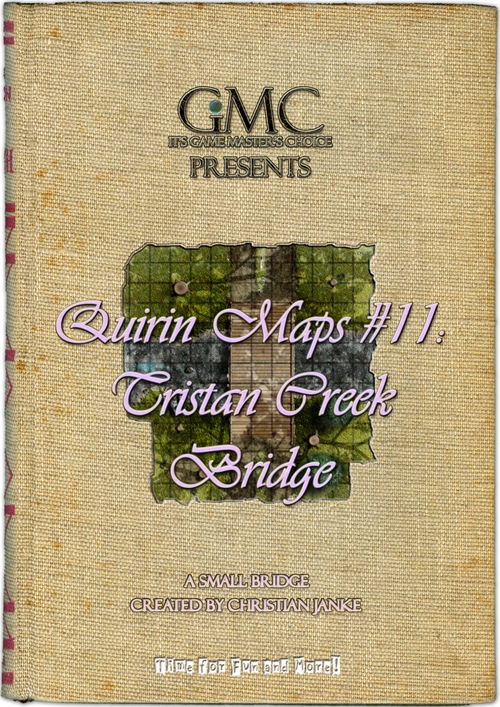 Quirin Maps #11: Tristan Creek Bridge PDFGMCTristan Creek Bridge is a short map accessory (.pdf), containing four full-color maps (a map in A4 with furniture and text, a map in A4 without text, a map in A4 without furniture and text, and a battle map without markings split up over 4 A4 pages) and four greyscale variants of a small bridge. This product additionally features three separate full-color 150 dpi .jpeg maps (with furniture and text, without text, and without furniture and text) and three separate greyscale 150 dpi .jpeg variants. You may reduce, crop, rotate, or inscribe these separate maps. The artist's signature must be within the final, published map. You may not resell these maps. If you use any of these maps in your product, you must include the statement "Some artwork copyright Christian Janke, used with permission." We retain the right to sell the use of these maps. Created by: Christian Janke Time for Fun and More! If you like this product, you might like Quirin Maps #12: Prison of Sagyanak. GMC—It's Game Master's Choice! Come to the world where mortals created and became gods, where the Long Night powers orcs and undead and where ruins of a glorious past let deities fear for their existence. A world of enigmatic NPCs: from the Ancients, over the mythical Sirison and the Guardian of Simit to a being of unknown age and power, the Quirin. Look out for the independent "Quirin Maps" series. Every issue can be used by publishers and/or game masters alike. Product Availability