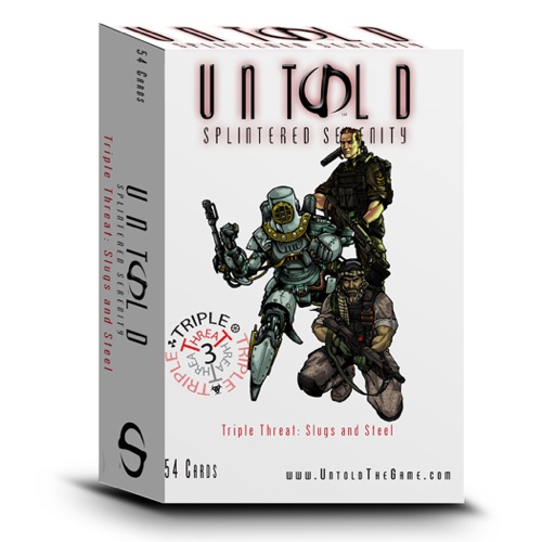 Untold Triple Threats are triple-tastic! Three fully built and disparate Untold characters, all drawn inexplicably together for one single cause, it's like a ready-made adventuring party, all in one package! Use them together or apart, as Player Characters or Non-Player Characters, an opposing force for Untold: Battle or as a support group for your normal party, or as an awesome story hook to get them started - there's almost no end to the ways that you can utilize the Untold Triple Threats!