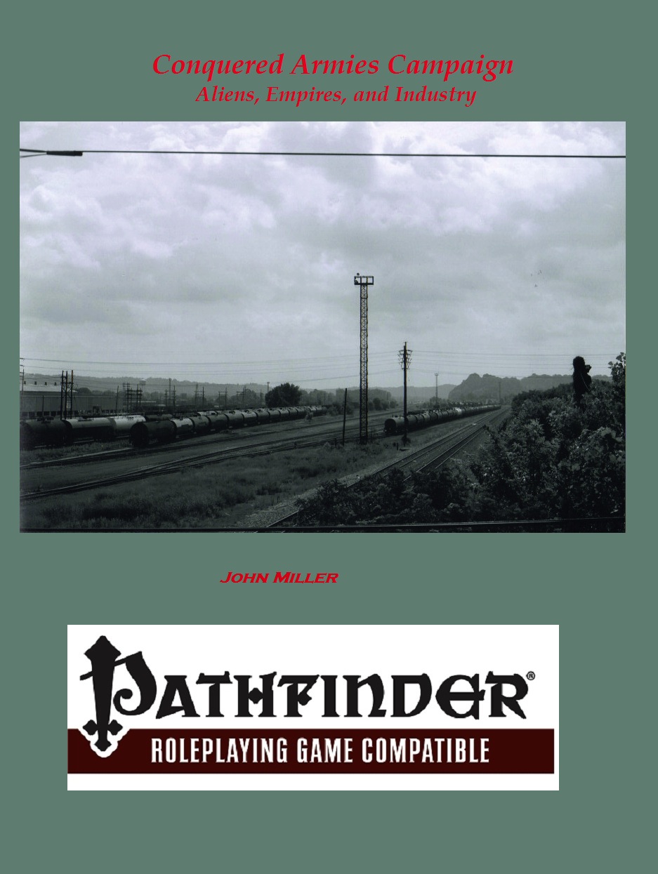 Conquered Armies Campaign: Aliens, Empires, and Industry (PFRPG) PDFZeppelin Commander PressThe Campaign setting for the Conquered Armies RPG. Contains 35 ship classes, encounter, economic, and technology statistics for over 50 systems as well as statistical profiles for the 20 alien races present in Gold Sector. Also includes a maps of the Gold Sector both at the end of the Great War (and the start of most campaigns) and two hundred years later at the birth of Sam Hall, as well as a timeline of the Conquered Armies universe. Product Availability