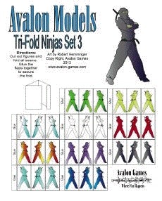 Avalon Models—Tri-Fame: Ninjas, Set #3 PDFAvalon Game CompanyA collection of 10 Tri-Frame Paper Models. This set offers 10 mecha in full color. Save your money and don’t go out and buy those expensive plastic and metal figure when you can get great models for a small price. Print up as many as you need and have fun. Look for other great models in this series. Product Availability