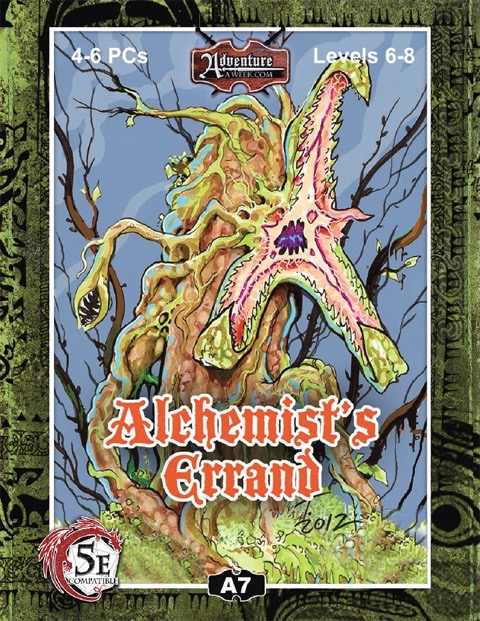 A07: Alchemist's Errand (5E) PDFAAW GamesA 5th Edition compatible adventure for four 7th level PCs Sometimes it is the simplest of tasks which end up taking much more of time and energy than they should. When the party is asked by the local sage to collect some rare flora, it feels like relatively easy money; a journey into the woods they’ve traveled before, a conversation with someone they’ve met before and then on to gather the crop. The characters can hear the Thirsty Serpent tavern calling them after a brisk afternoon’s work.But the PCs’ plans go awry when it turns out nothing is quite that straighforward. Deals have to be struck, foes defeated, anger and scorn dealt with and then the whole process gone through again. When there is duplicity at every turn and double-crossing is done with relish, the PCs have to keep their wits and weapons equally sharp. Dealing with someone who is prepared to cross the line between humiliation and harm at a moment’s notice is a tough challenge; this quickly becomes about much more than mere mushrooms! Also included in "Alchemist's Errand":