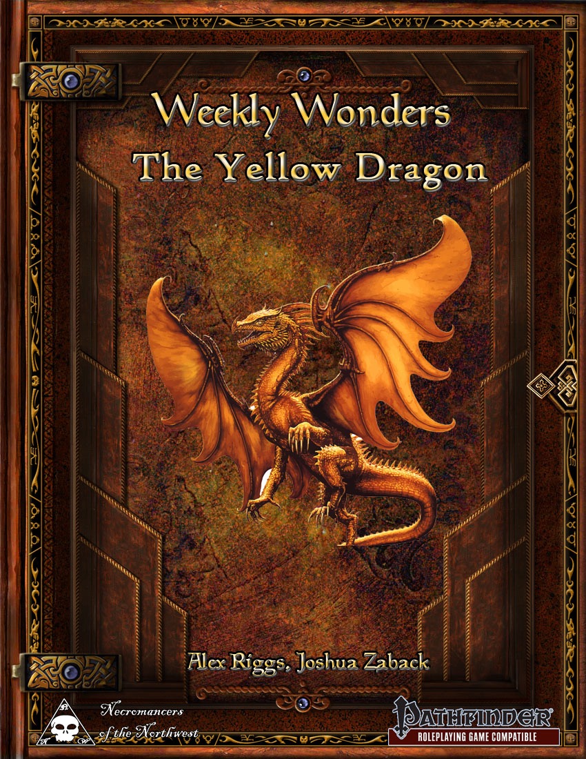 Weekly Wonders: The Yellow Dragon (PFRPG) PDFNecromancers of the NorthwestA New Shade of Dragon! There are many kinds of dragons, and as new Pathfinder Bestiaries have come out, the number has only continued to increase. Chromatic dragons, metallic dragons, oriental dragons, primal dragons, and so many more. You might think that with all those dragons already out there, there’s no need for any more. If so, you’d be wrong. This book presents a new type of true dragon, the yellow dragon. Creatures inherently tied to age, decay, and the passage of time, these mysterious dragons possess a unique breath weapon that ages their victims rapidly, as well as numerous other unique powers relating to the manipulation of time and the forces of entropy. The book contains an overview of the yellow dragon’s abilities, an ecology of the yellow dragon, and a full stat-block for yellow dragons of each and every age category from wyrmling to great wyrm. Product Availability