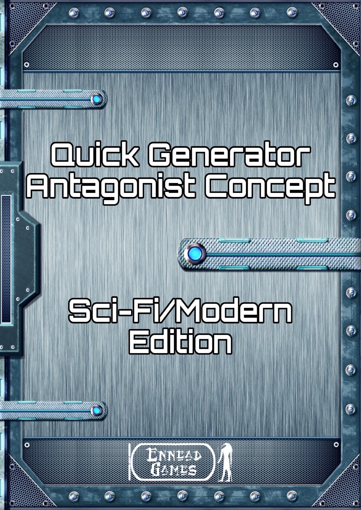 Quick Generator Antagonist Concept – Sci-Fi and Modern PDFEnnead GamesQuick Generator Antagonist Concept – Sci-Fi and Modern When running a game or coming up with content for a story, you can sometimes be stuck for ideas and need inspiration quickly. The Quick Generator series is designed to help with that. At a maximum of two tables, you can come up with your required concept, suggestion or idea in a very small number of dice rolls. This particular QG is about coming up with a concept for your antagonist. An antagonist is defined as “a person who actively opposes or is hostile to someone or something; an adversary.”. This doesn’t necessarily mean they are evil or a true “villain” but your players and characters might see them that way. This version covers those you might find in a sci-fi or modern setting. 2 x d100 tables give you 10,000 possible combinations, such as...