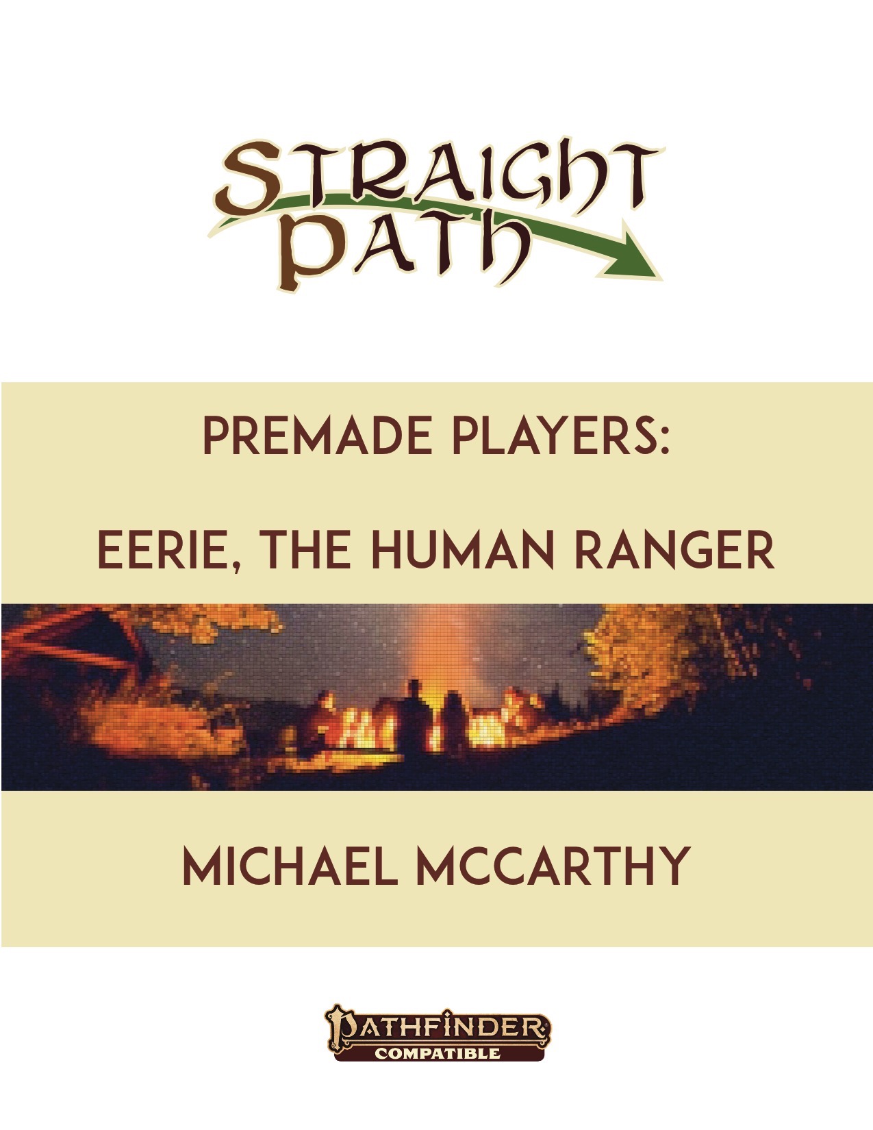 Premade Players: Eerie, the Human Ranger (PF2E) PDFStraight Path GamesDo you know how to make a character for the Pathfinder Roleplaying Game - Second Edition? Do you have time before your game? Do you have a friend who wants to jump in and just needs a quick pregen to get them started? Or, perhaps you're a GM and want a straightforward NPC, with a statblock for you to get started with. Then this is for you. Each Premade Player contains a single pre-built 1st level PF2E character. It also contains rules for all of their feats and spells. And finally, it also contains a portait of the character, a sample backstory, and some personality tips to play them. Product Availability