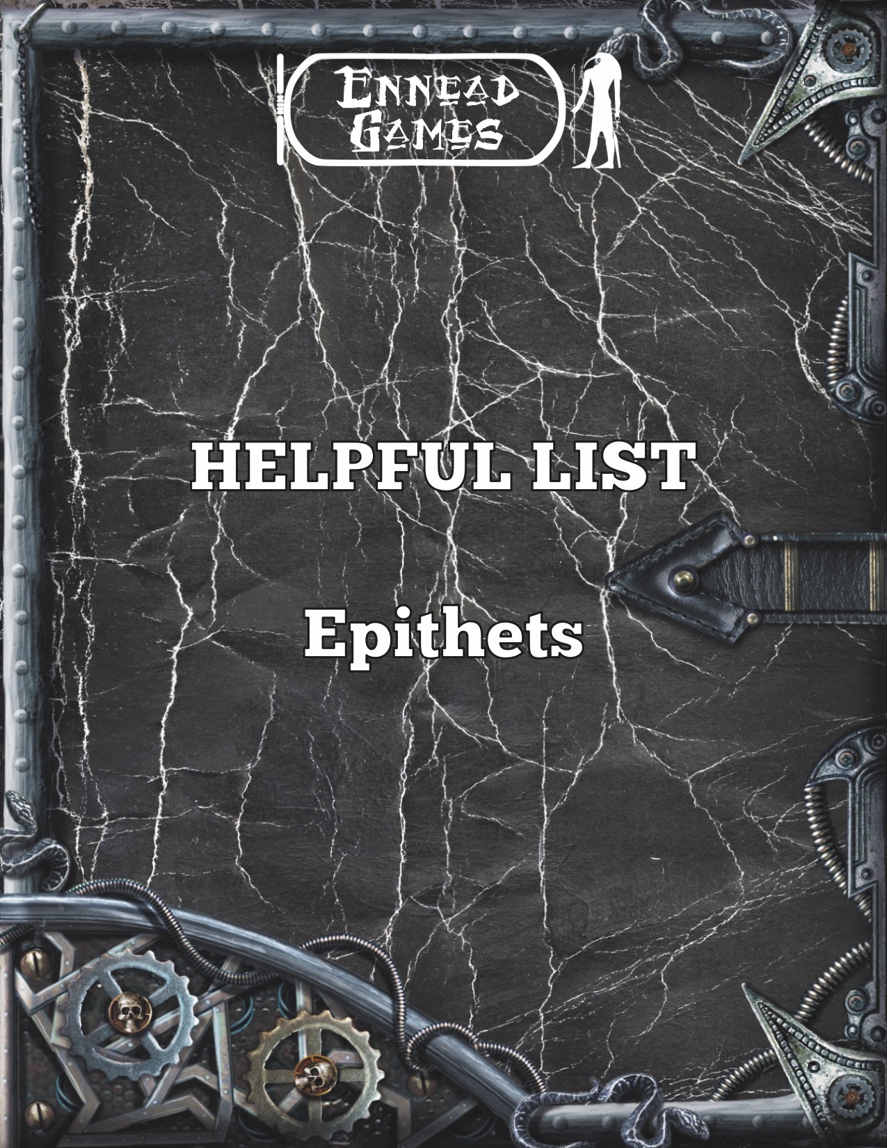 Helpful List - Epithets PDFEnnead GamesWhat is the main characteristic of the person? The Helpful List range from Ennead games is a series of lists in PDF format that give you ideas or pre-made results from other generators and tables. This particular one covers epithets. An epithet is described as : "an adjective or phrase expressing a quality or attribute regarded as characteristic of the person or thing mentioned." Here they are divided into two groups/tables. One being, for the most part, positive and the other being , again for the most part, negative. How and why the character earned the epithet is up to you, but whatever the reason it should be memorable and something worthy ofthe title! Example Epithets "Positive" Epithets