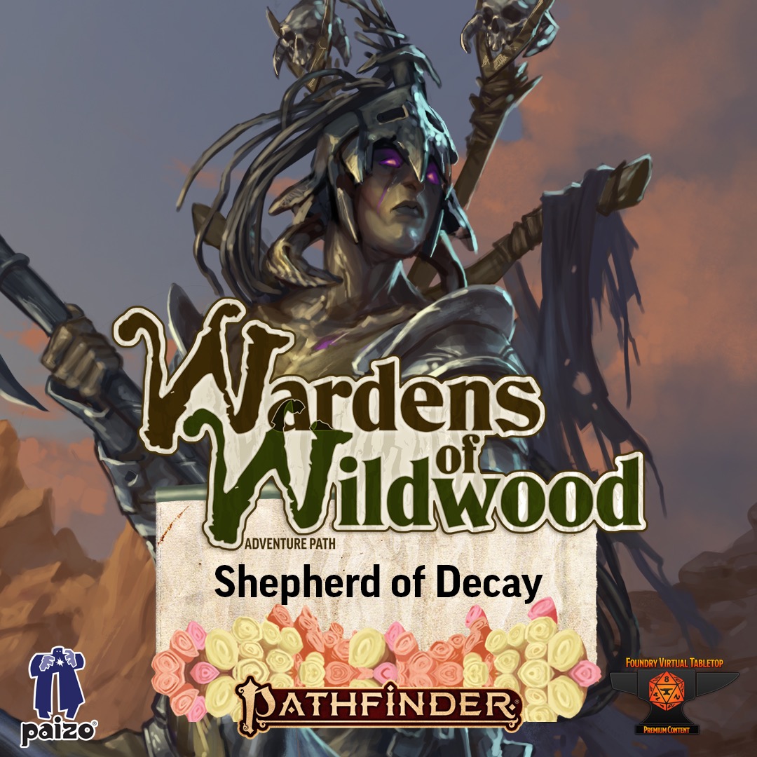 Pathfinder Adventure Path #203: Shepherd of Decay (Wardens of Wildwood 3 of 3) (Foundry VTT) CODEFoundry Virtual TabletopHaving neutralized the enemy's new weapons, the PCs and their allies assault the Wildwood Lodge directly to oust its murderous despot. Yet after recruiting local allies and besieging living fortresses, they discover their foe has fled to an unfamiliar realm: the Plane of Wood. The PCs pursue, arriving in an elemental town that is all too familiar with the Wildwood Lodge's trickery. The PCs must earn the inhabitants' trust and investigate their foe's final gambit before giving chase into a blighted wilderness and averting an invasion that could devastate the Verduran Forest. Shepherd of Decay is a wilderness-themed Pathfinder adventure for four 11th-level characters. The adventure concludes the Wardens of Wildwood Adventure Path, a three-part monthly campaign in which a group of adventurers navigate a tricky balance between idyllic wilderness, a hungry nation, and primal forces beyond the natural world. This volume also includes a look at how to continue the campaign, a gazetteer of a settlement on the Plane of Wood, several new magical items, and new monstrous threats! Experience this Adventure Path using the full suite of Foundry VTT features, using maps, tiles, tokens, sounds, and much more to bring you content which truly cannot be experienced in the same way anywhere else. This purchase will grant you an activation code which can be activated through your Foundry VTT account page at https://foundryvtt.com/me/purchases (downloadable from your My Downloads page on paizo.com). Afterwards you will be able to install the "Wardens of Wildwood – Shepherd of Decay" module on the Foundry Virtual Tabletop setup screen. To learn more about activating and installing premium content in Foundry Virtual Tabletop, visit https://foundryvtt.com/article/premium-content/. Note: This product contains just the Foundry module code for Pathfinder Adventure Path #203: Shepherd of Decay (Wardens of Wildwood 3 of 3), and requires the user to have or purchase the corresponding PDF. If you'd like to purchase both the module code and the PDF for $34.99, you may do so here. Shepherd of Decay for Foundry VTT includes: