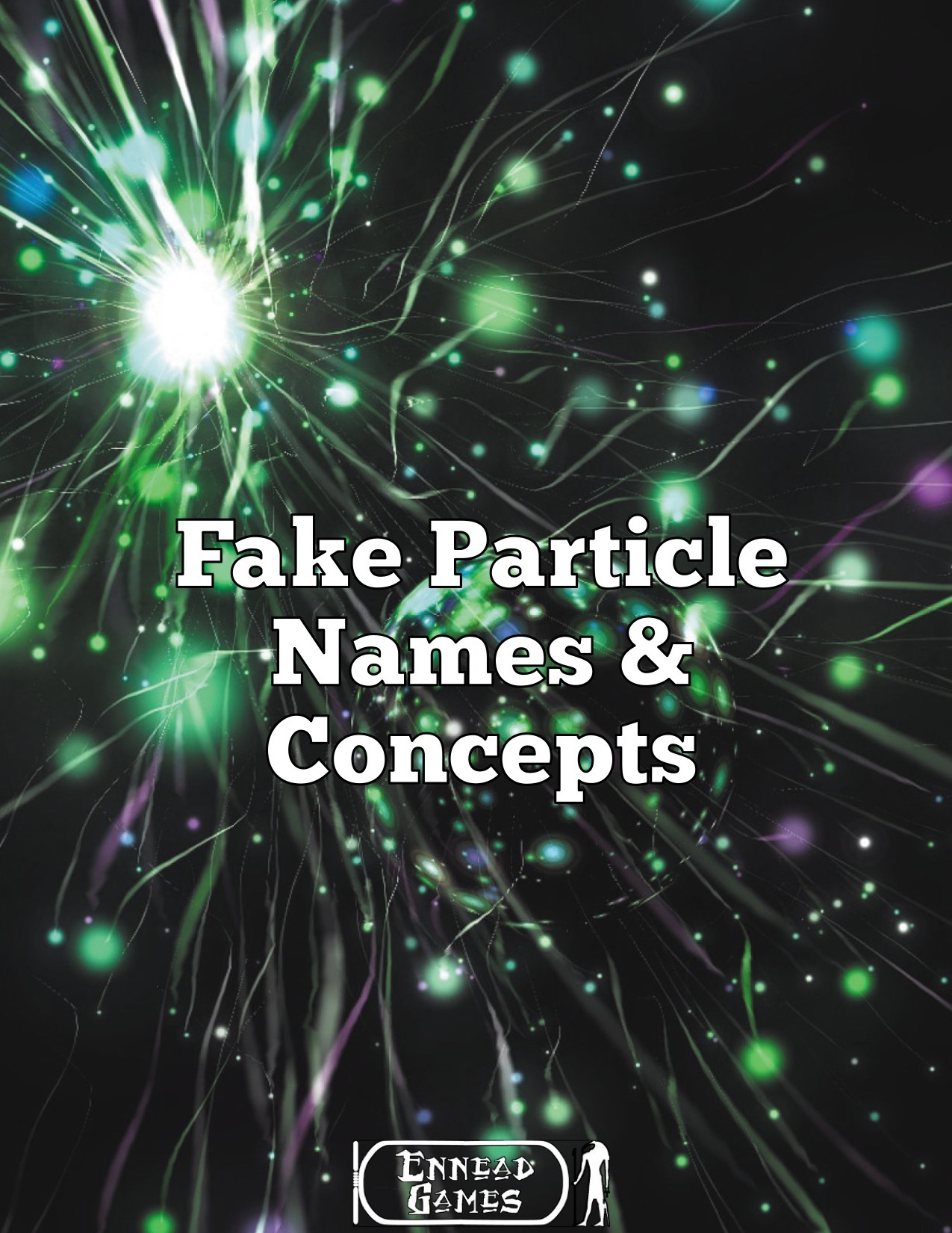 Fake Particle Names & Concepts PDFEnnead GamesFake Particle Names & Concepts Generate some fake (and maybe not so fake) names and concepts for particles! A particle is an extremely tiny piece of matter, and many scientists believe that everything in the universe is made up of particles, such as electrons or protons, to name a couple of the more commonly known ones. For sci-fi or modern-themed games, having a quick description, name or concept can help make things more believable, even if the results are completely fake or make most self-respecting particle physicist eye twitch… This publication gives you a series of tables that together can help generate names, variations and concepts about various particles, some of which may match or resemble real ones! Works well alongside the Technobabble Generator, also from Ennead Games! Example outputs include: