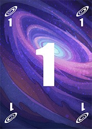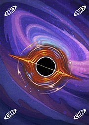 A deck of 65 high-quality cards with holographic foil, made up of 10 numbered cards in each of 5 suits and 15 special face cards, including stars, moons, planets, starship captains, and a black hole