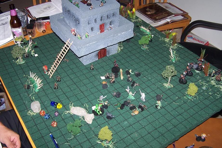 One well placed Fireball after the bard threw up an Illusion of human cavalry coming and it was pretty much over. The rest was pretty much a cleanup, especially with the soldiers (8 on the balcony, the other 6 I had bracing the door) in the keep raining arrows on what was in range.