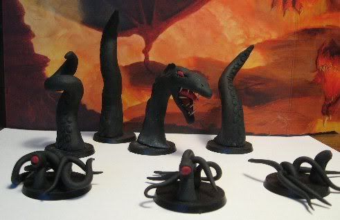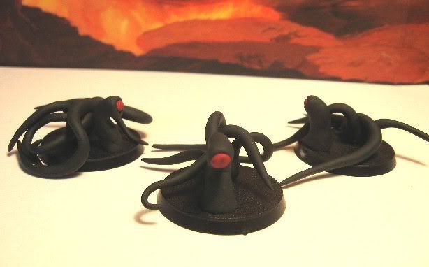 OK, while I've got a day off sick from work (that's what I get for making my wife a romantic 3-year anniversary dinner... she's fine and I'm dying) I've been watching a DVD and making these while I sit on the couch. I'll post pictures tonight, but basically I have 3 "large" bases, each with a tangle of about 5 small, thin tentacles and a single eyestalk. That'll spice up the encounter with Black Magga a little.