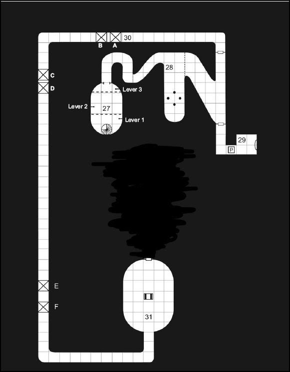 Alert now to the possibility of more traps you move down the corridor slowly..painstaking examination of the floor reveals two more well concealrd trap doors each of which you disable after some work.By the time you reach the next room you are mentally and physically tired(all this take 20 searching has taken a few hours after all)