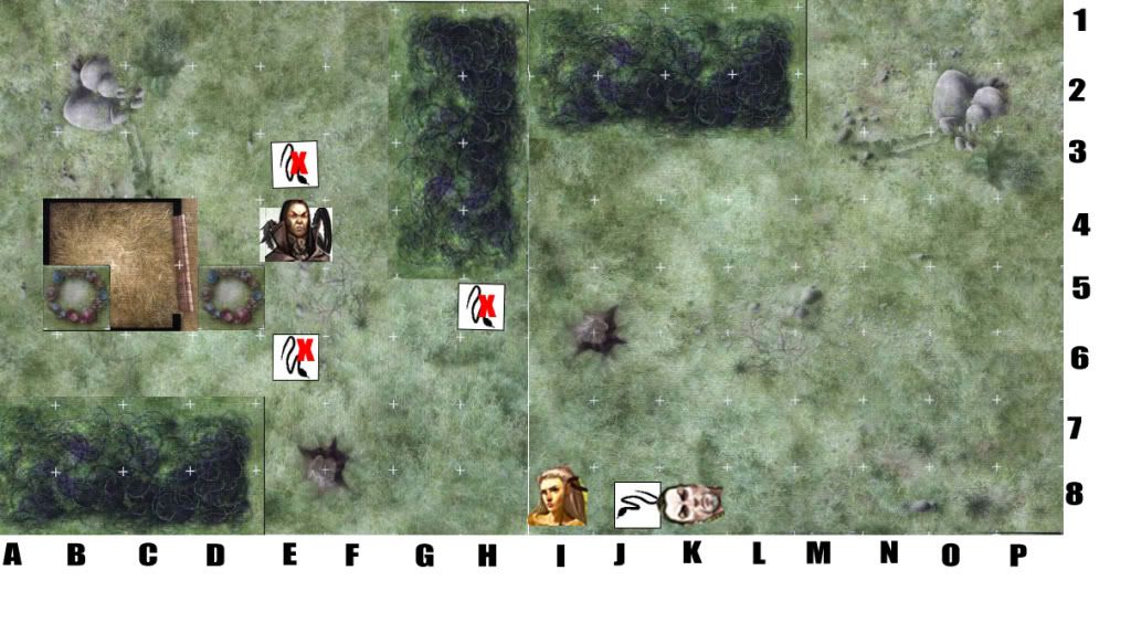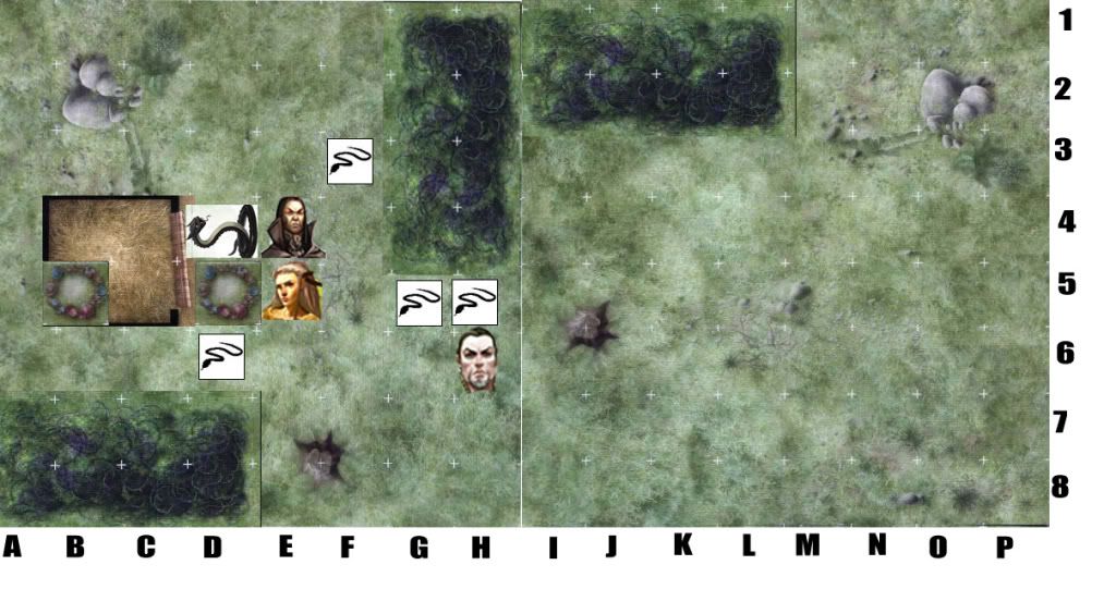 Map Here. It's a horrible frankenstein of things, but I hope it makes sense. Gierixa's rolls are here. Initiative:Goblin Snake, Gierixa, Mordecai, Angvar.